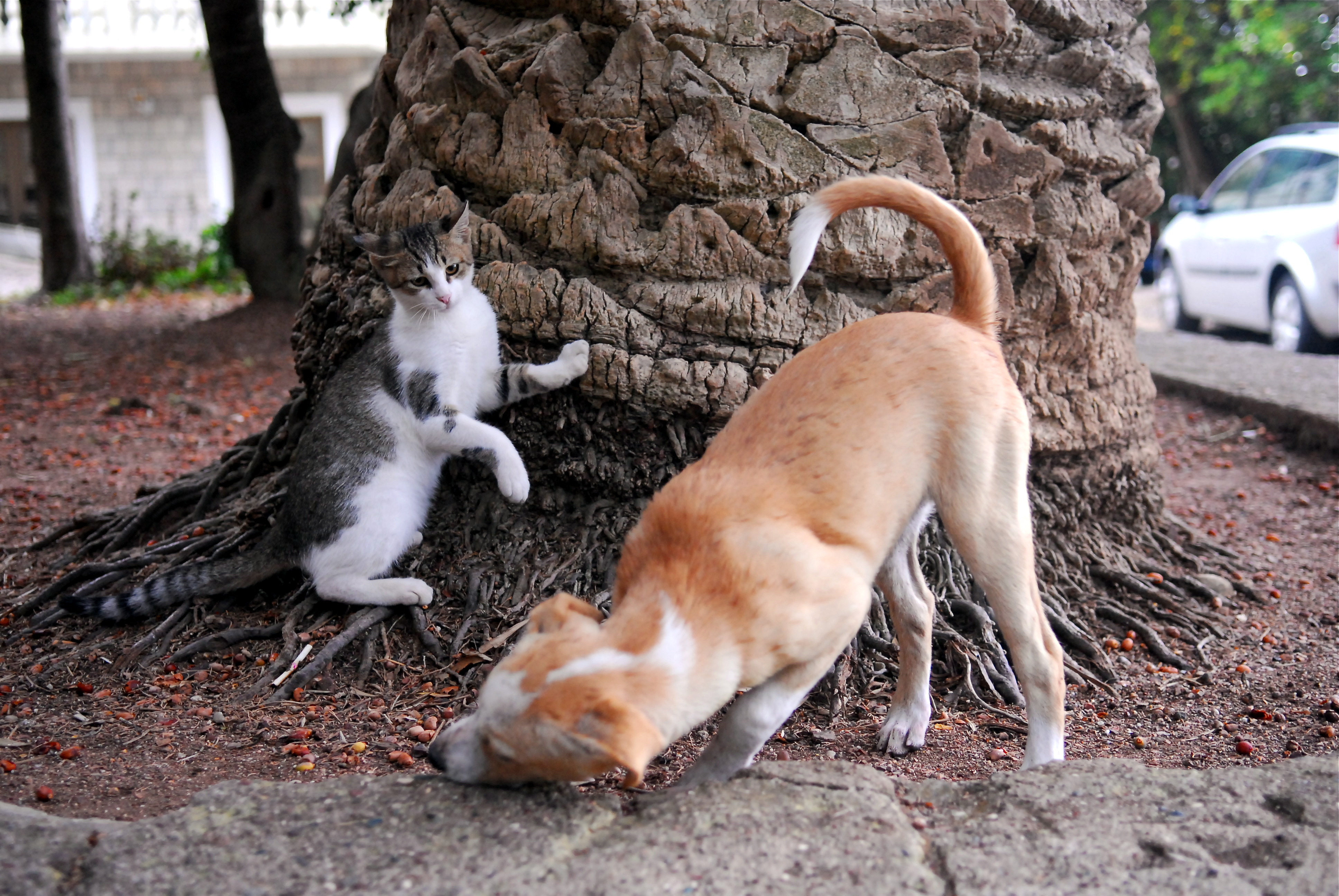 Эх, а обитатели местные совсем не дружелюбные..В такой позе и с таким же выражением частенько бывает моя кошка, когда собака "достает" ее своими энергичными играми. По идее, через долю секунд пес должен получить дозу успокоительную