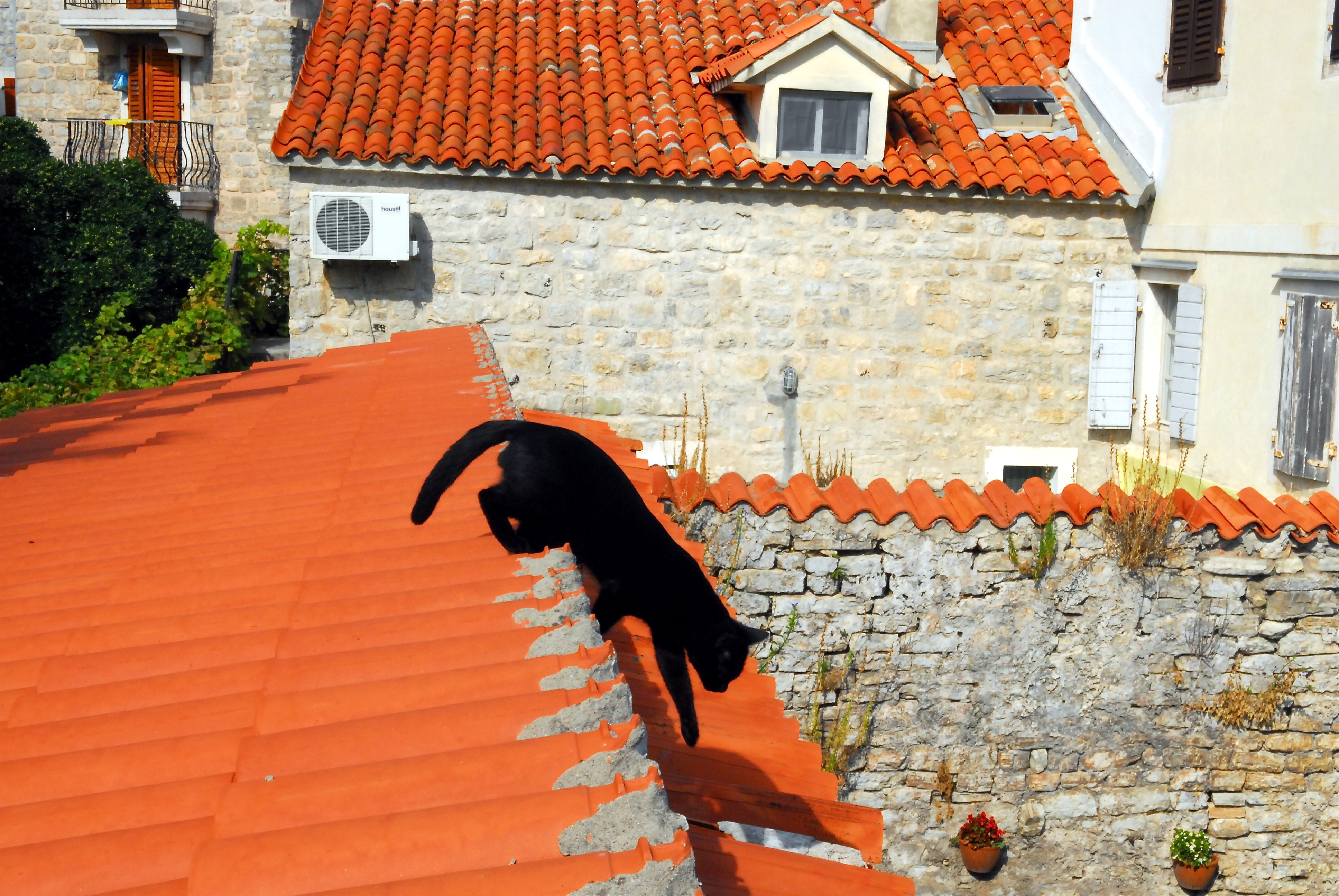 Черная кошка на оранжевой крыше так и просится на холст - шикарная картинка!