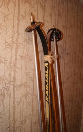 Деревянные лыжи 210 см, крепления и палки