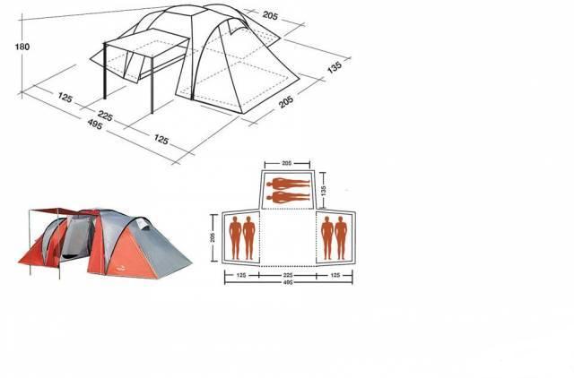 Кемпинговая палатка, 6 мест, 495х180х340 см, б/у